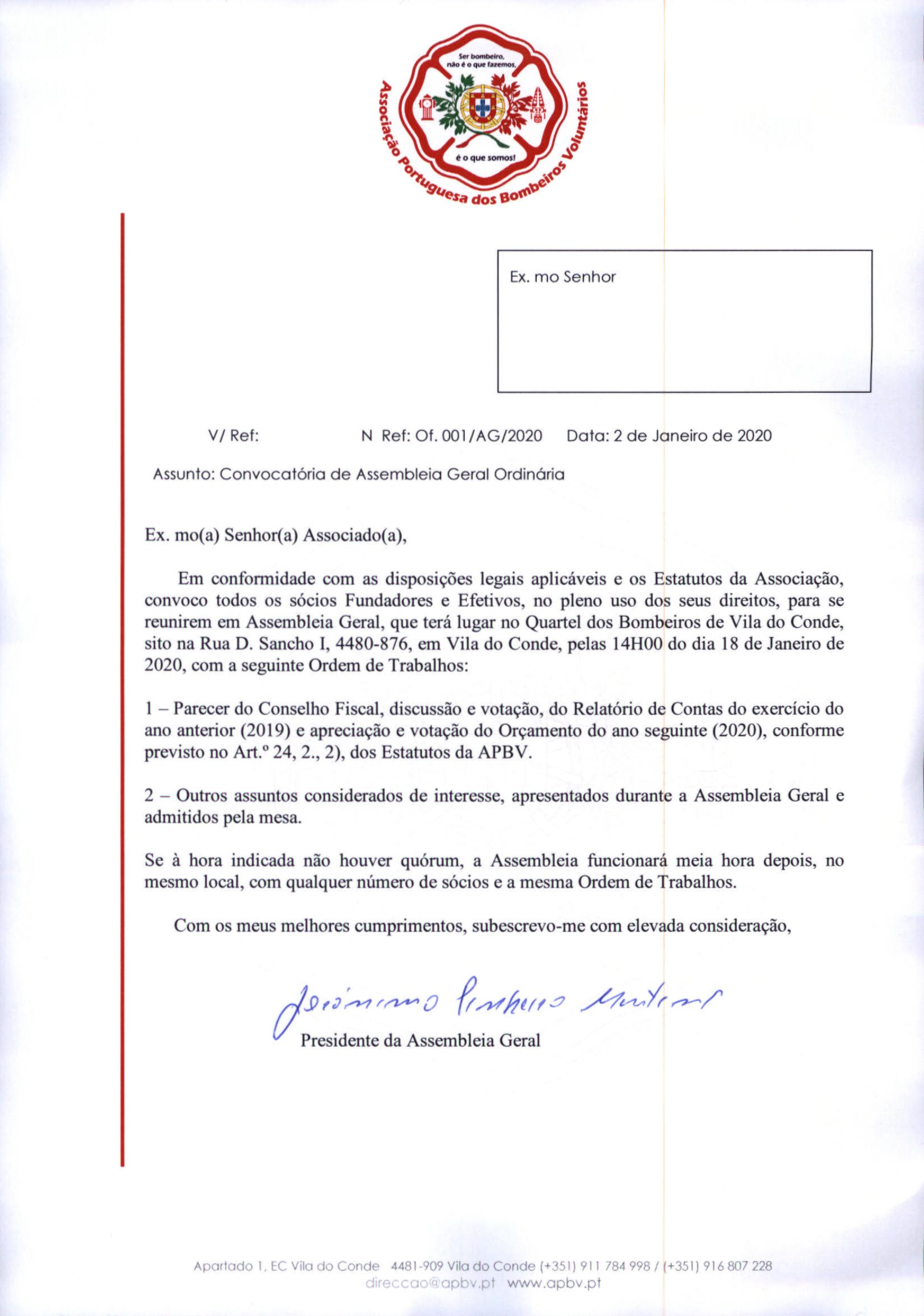 Convocatória de Assembleia Geral Ordinária 02/01/2020