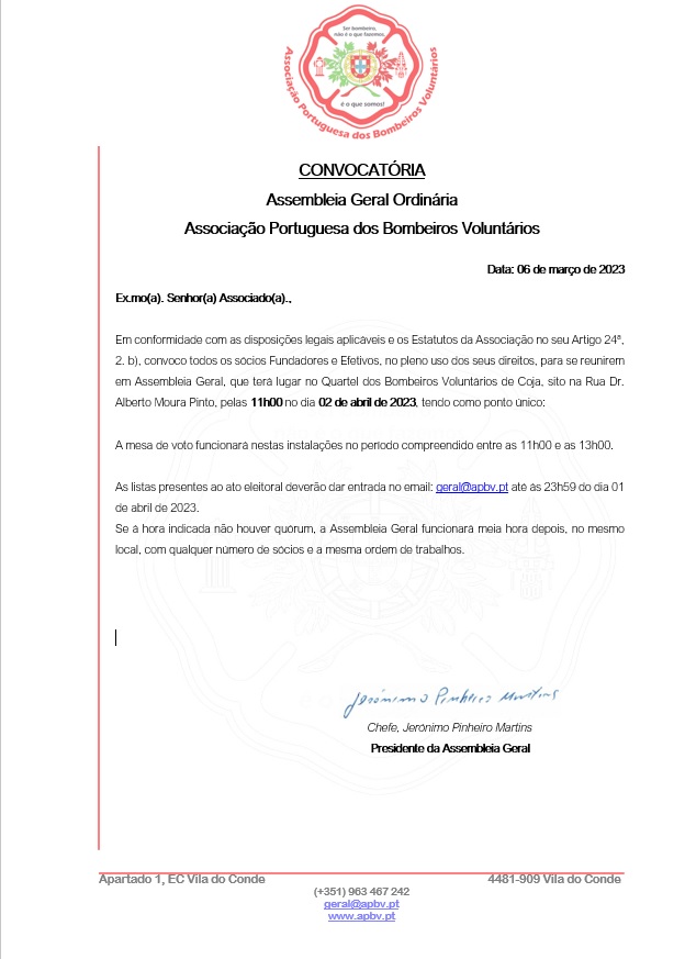 Convocatória de Assembleia Geral Ordinária 02/04/2023