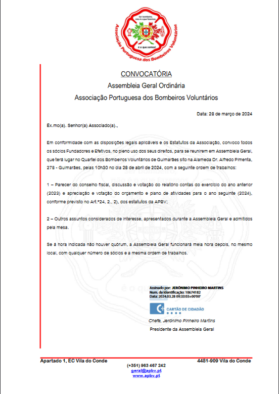 Convocatória de Assembleia Geral Ordinária 28/04/2024