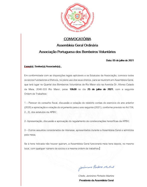 Convocatória de Assembleia Geral Ordinária 05/06/2021