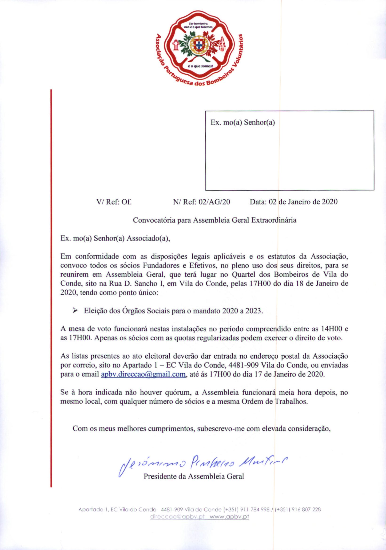Convocatória de Assembleia Geral Extraordinária 02/01/2020