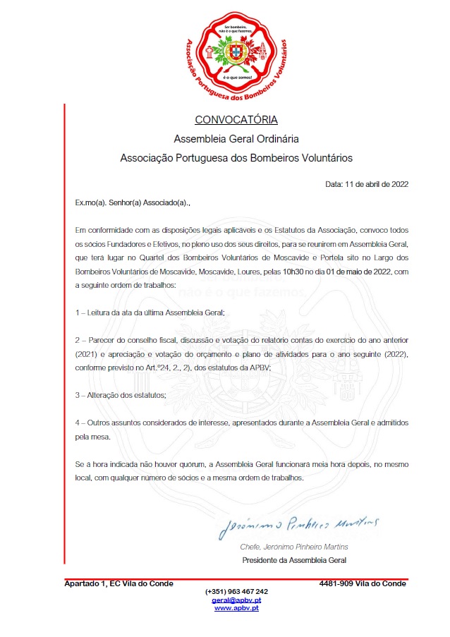 Convocatória de Assembleia Geral Ordinária 01/05/2022